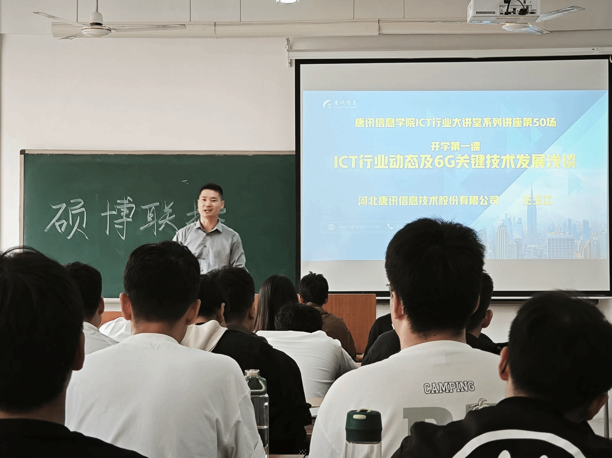 为帮助同学们了解行业发展新动向,提升职业规划能力,10月15日下午,电气自动化系在创新楼A区305教室举办“硕博联播”讲座,本次讲座由河北唐讯信息技术股份有限公司总经理王玉江主讲。电气自动化系主任唐勇主持讲座。王玉江从5G技术出发,为同学们深入分析了信息通信技术(ICT)行业的新趋势,并细致阐述了6G基数的发展重点,他鼓励大家要主动关注信息化前沿技术发展,不断深化专业知识学习,积极利用学科竞赛拓展视野,在实践中持续提升自我。...