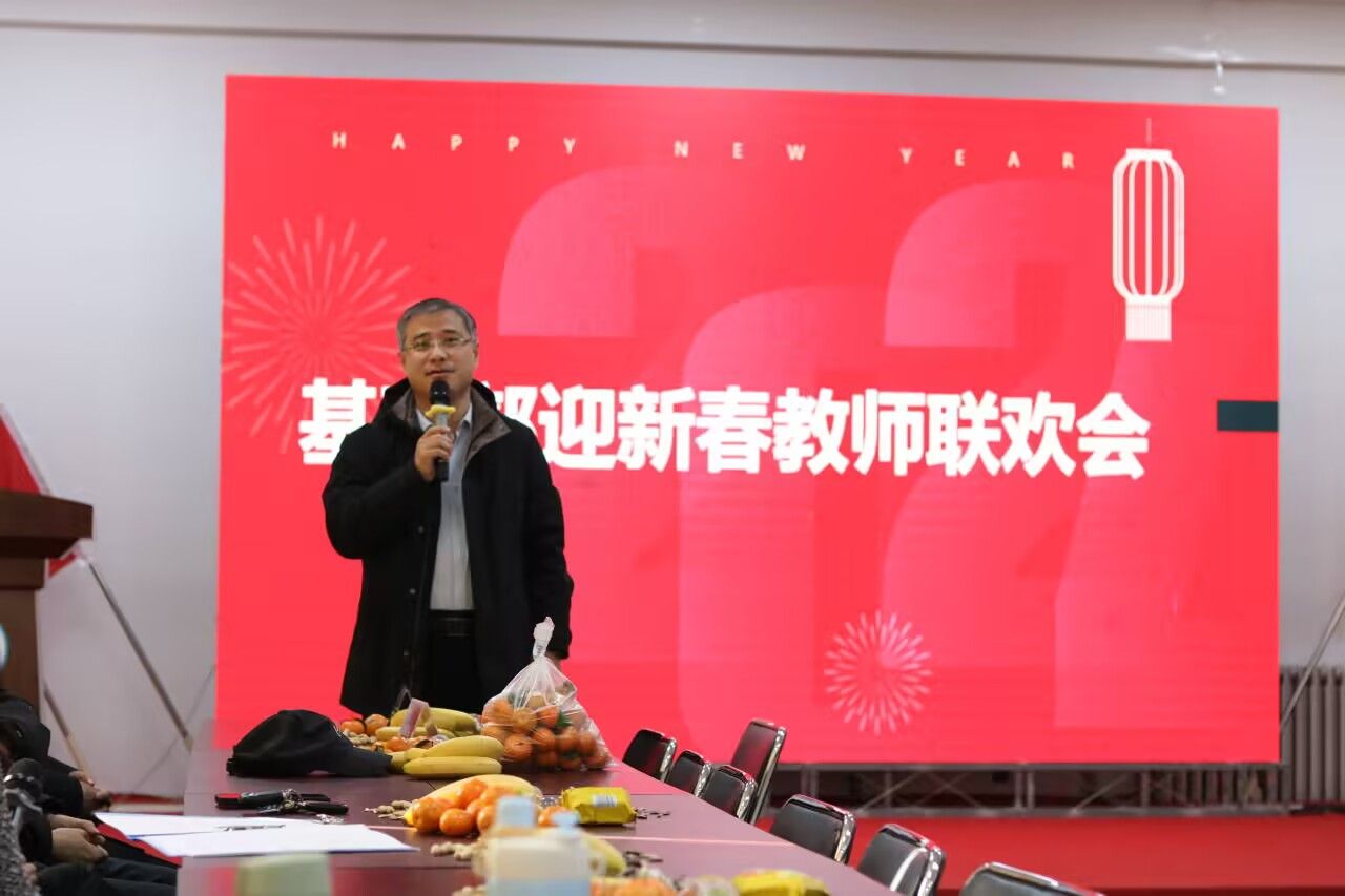 12月26日下午,基础部在启智楼B201室举办“固本强基守初心 砥砺同行启新程”2025元旦联欢会。副校长杨凯出席联欢会并与基础部全体教师共庆元旦,体育教学部主任周保国、继续教育中心主任郝海森参加联欢会。杨凯在致辞中充分肯定了基础部过去一年取得的成绩,对全体教职工在本科教学合格评估工作期间展现的良好精神风貌和付出的辛勤努力表示赞赏和感谢,向全体教师及家属表达了新年的祝愿。他指出,在新的征程中,希望基础部全体教师继续携手共进,...