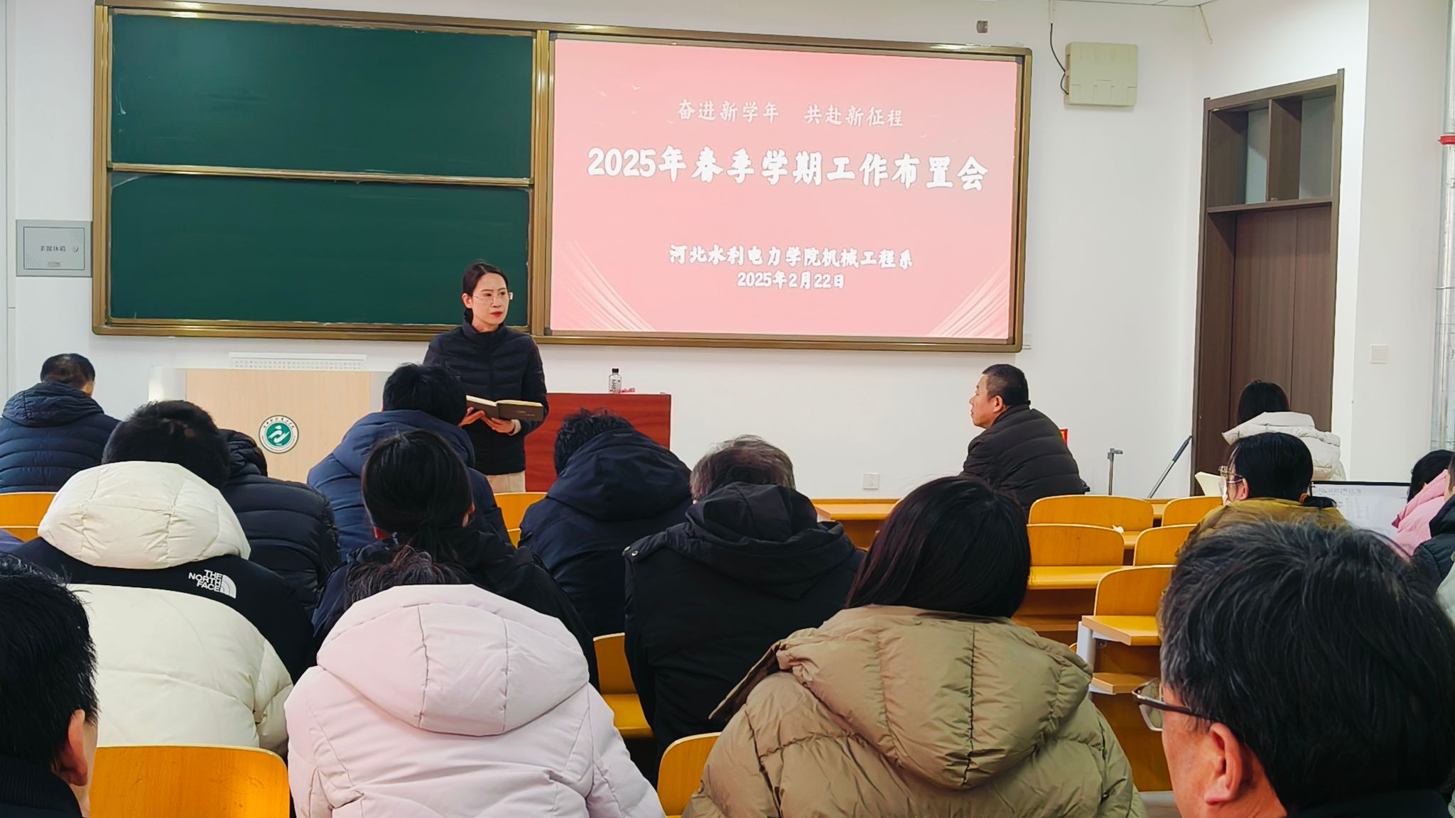 2月22日,机械工程系在求是楼C204召开2025学年春季学期工作布置会议,旨在总结学校春季开学准备暨安全检查工作结果,部署2025年春季学期重点工作,明确目标,凝聚共识,为机械工程系新一年的发展开好局、起好步。机械工程系全体教职工参加会议。机械工程系主任张铁壁首先向教职工传达本次开学准备暨安全检查工作会议校领导的讲话内容,总结会议精神。他强调,一是要以“校查+系自查”形式开展学期初教学检查,老师们要在准备好个人教学材料的同时做好课堂预案;...