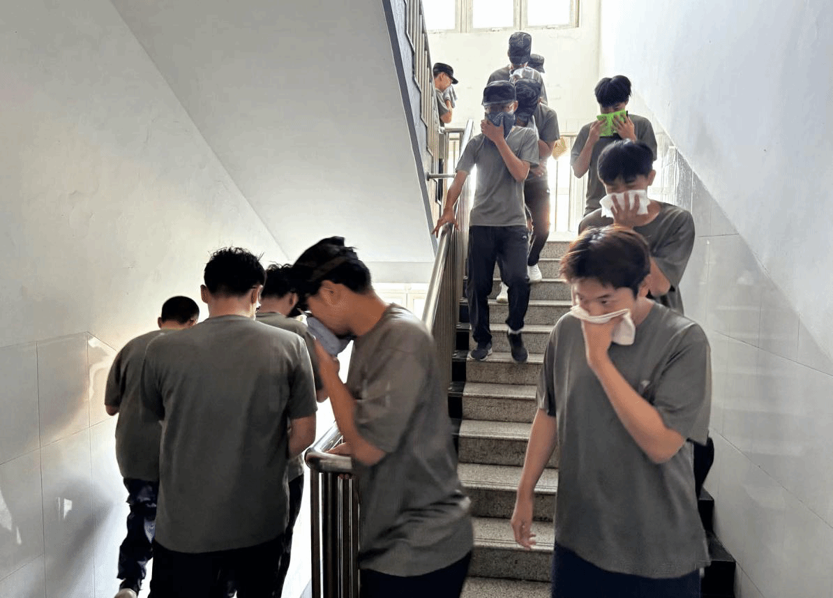与此同时,各系党总支书记、副书记和辅导员按照演练方案在1、3、4、5、7号学生公寓组织本系新生分别开展了灭火与疏散逃生演练活动。