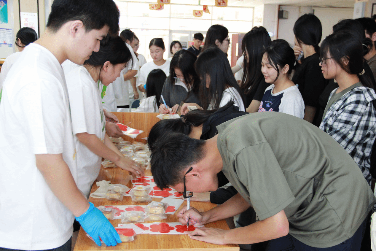 在心理健康教育中心老师的带领下,同学们踊跃参与,他们揉面团、包馅料,按压月饼模型,每个参与者的脸庞上都写满了专注。在大家的齐心协力下,精美的月饼最终出炉,吸引了广大师生驻足品尝。