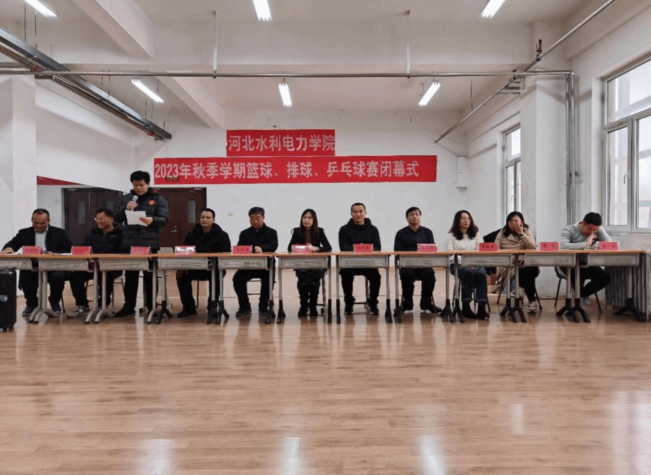 经过数月的激烈角逐,我校2023年秋季学期篮球、排球、乒乓球比赛于12月14日圆满结束。体育教学部、校团委、各系的相关领导及参赛队员代表参加了闭幕式。