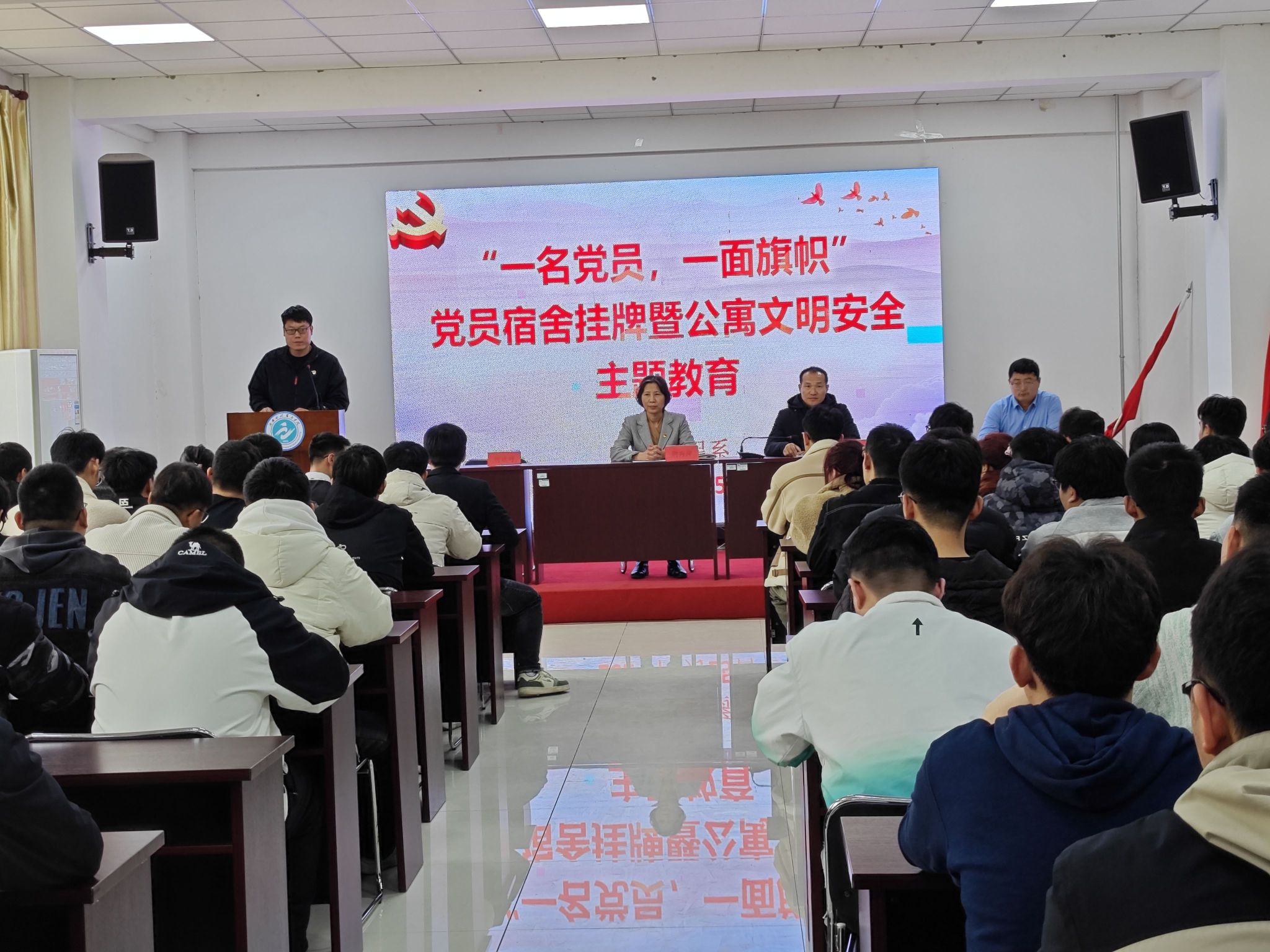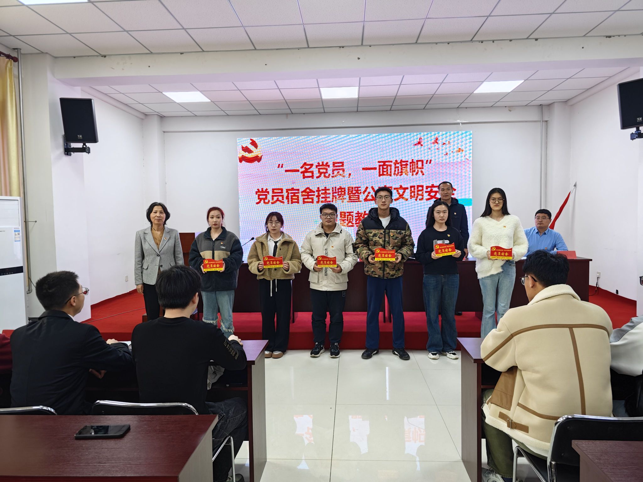 机械工程系组织开展“一名党员,一面旗帜”党员宿舍挂牌仪式暨一站式社区公寓文明安全主题教育活动