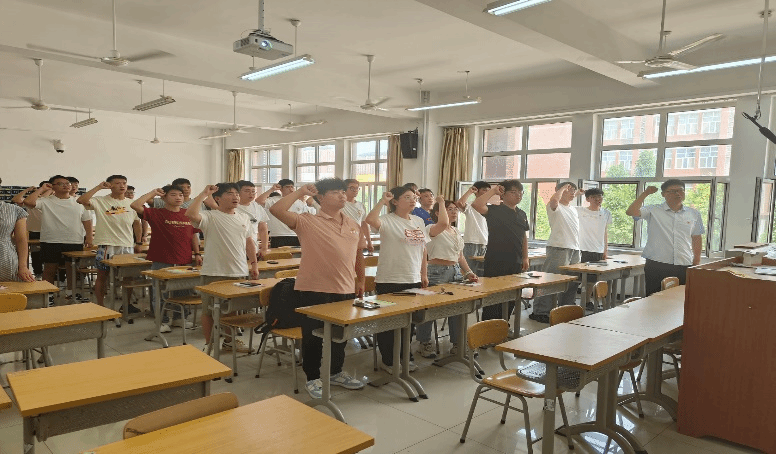 系团委书记贺欢呼表示作为新时代的大学生要不忘初心,洁身自好,廉洁自律,端正态度,珍惜当前的美好生活。在未来遇到困难时,不轻言放弃,学校永远是毕业生最坚实的后盾保障。他希望毕业生党员再攀高峰,在未来的人生舞台上展现自己的价值。最后,他带领全体党员重温入党宣誓。