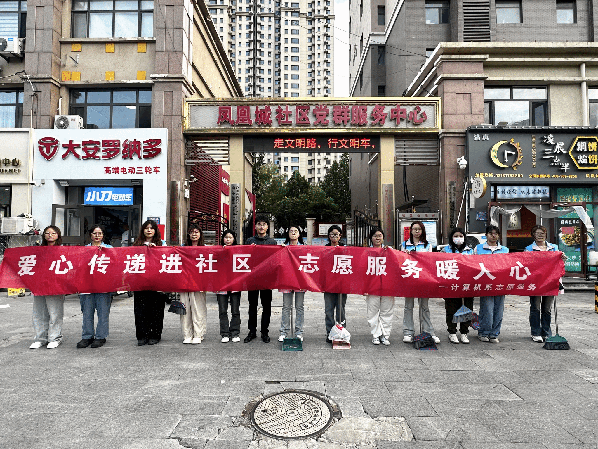 9月14日,计算机系学生二支部赴凤凰城社区开展“爱心传递进社区,志愿服务暖人心”志愿服务活动,支部书记张建武老师与支部委员杨阔带队前往