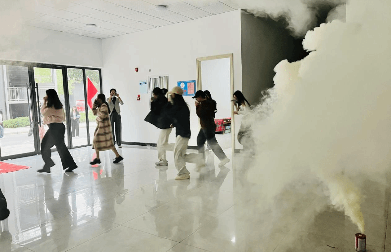 下午3:30分,全体参演人员在高新区产教融合示范园区1B公寓楼前广场集合。火灾逃生疏散演练前,安全工作处罗占军老师向大家讲解了发生火灾后的有效逃生自救方法和演练注意事项。随后,曹青松对逃生疏散演练中的注意事项进行了再强调。全体参演人员按方案要求进入楼内演练位置,各楼层、各楼道口和疏散门前全体工作人员待命,对演练学生进行疏导。演练开始后,工作人员点燃烟雾,拉响警报,各疏散门全部打开,同学们有序快捷地逃生疏散。不到两分钟,全部同学安全撤离火灾演练现场,逃生疏散演练活动圆满结束。