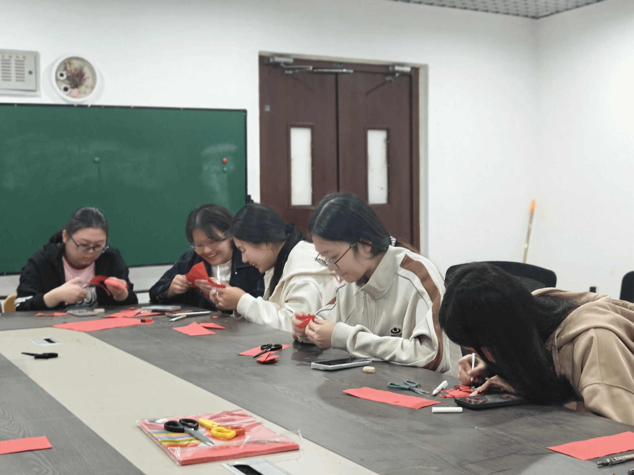 活动现场,同学们聚精会神地折叠红纸、用心剪裁,用一双巧手、一把剪刀创造出一幅幅生动的剪纸作品。这些作品不仅是对剪纸艺术的传承,更传达出同学们对勤俭节约、爱惜粮食理念的理解。