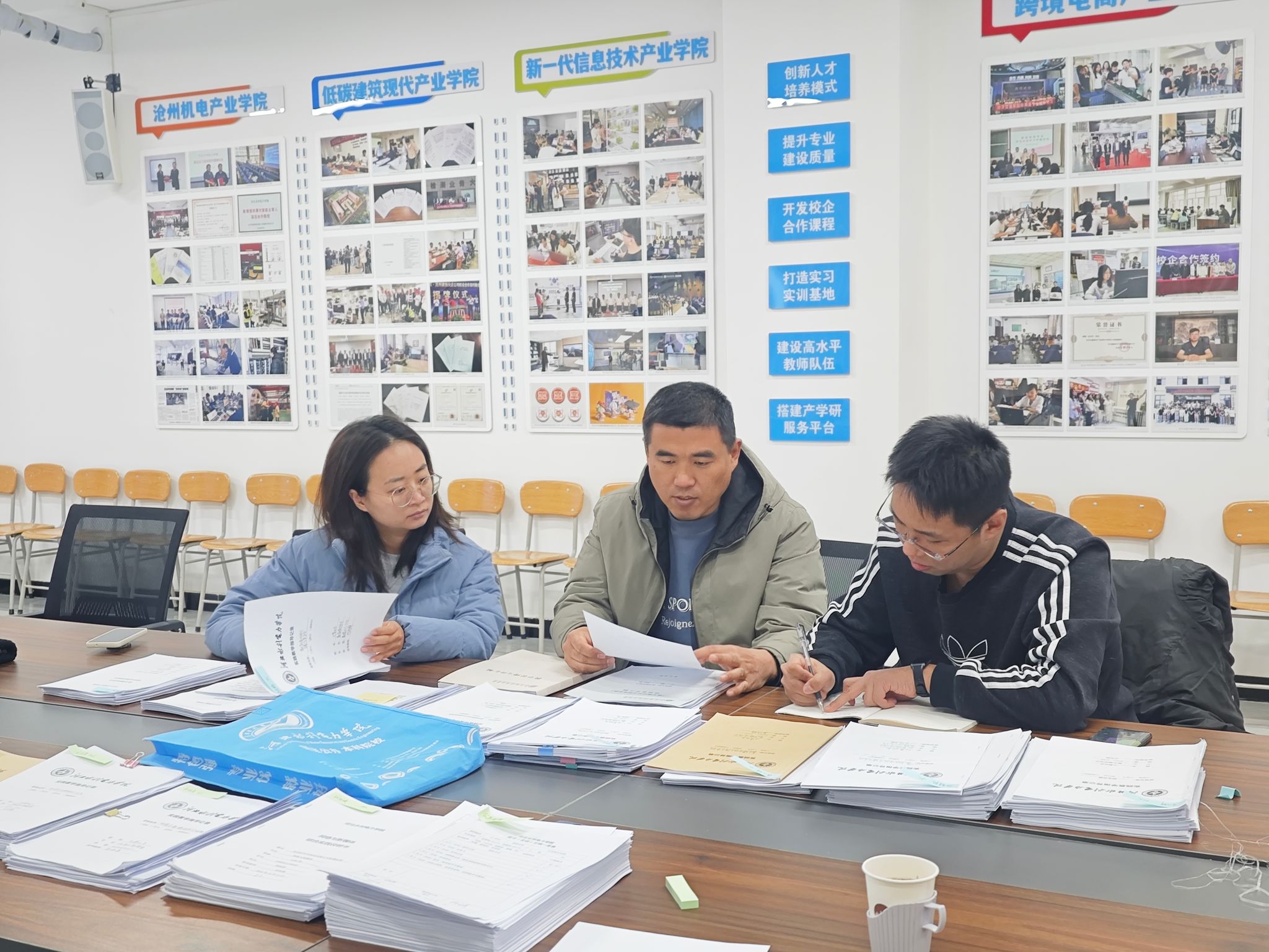 为进一步优化实践教学过程,规范实践教学材料,12月28日上午,计算机系联合教务处于高新区产教融合示范园区7A310开展了以“立足质量 规范材料 严格检查”为主题的综合实践材料检查活动。计算机系党委书记崔炳德、副主任冯涛,教务处教学管理科科长李岩、办公室主任孙文君、实践教学科科长赵福伟及计算机系部分教师参加了活动。
