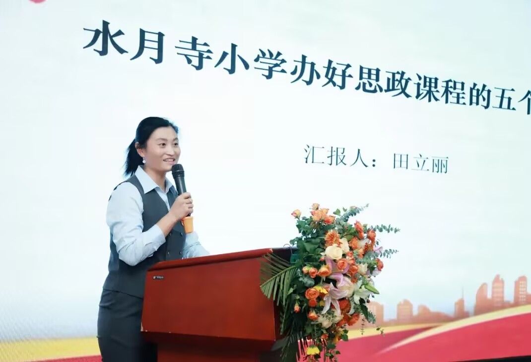 水月寺小学教师田立丽以“水月寺小学办好思政课程的五个关键词”为主题进行了汇报,分别从大情怀、大课堂、大运河、大先生以及大平台这五个关键词,展示出了水月寺小学独具特色的思政课程。她表示,水月寺小学师生将以此次签约为契机,进一步加强思政课程建设,锻炼思维、提升高度,在教育教学中增长见识、修养品行、开阔眼界、丰富思想。